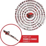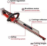 Аккумуляторный кусторез Einhell Professional GP-CH 18/61 Li BL-Solo сочетает в себе мощность и универсальность: как и все инструменты семейства Einhell Power X-Change, он работает от мощного литий-ионного аккумулятора напряжением 18 В. Устройство также оснащено бесщёточным двигателем Einhell PurePOWER. Этот бесщёточный двигатель обеспечивает большую мощность и более длительное время работы по сравнению с обычными коллекторными двигателями. После регистрации на сайте на бесщёточный двигатель предоставляется 10-летняя гарантия. Благодаря небольшому весу (2,9 кг) удобный триммер для живой изгороди легко держать в руках. Поворотная задняя рукоятка и узкая передняя рукоятка обеспечивают точное придание формы и стрижку. Прочный металлический редуктор оптимизирует передачу энергии от аккумулятора к точному стальному лезвию с лазерной и алмазной огранкой длиной 61 см и расстоянием между зубьями 26 мм. Длина меча составляет 67 см. Это означает, что даже живые изгороди среднего и большого размера могут быть оптимально подстрижены. Для ещё более эффективной обрезки предусмотрена двухступенчатая регулировка скорости: режим ECO обеспечивает длительное время автономной работы, а режим MAX POWER — оптимальную скорость обрезки, позволяющую без проблем срезать толстые ветки. Антиблокировочная система тормозов обеспечивает оптимальную безопасность при работе. Съемный контейнер для сбора скошенной травы позволяет быстро удалять скошенную траву. В комплект входит прочный кожух для защиты лезвия. Благодаря защите от ударов транспортировка и хранение становятся безопасными.