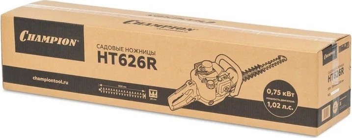 Двойное лезвие длиной 60 см для эффективной работы Удобное расположение праймера Четырех пружинная система гашения вибрации Две рукоятки обеспечивают надежное удержание Champion HT626R Мягкое покрытие рукояток