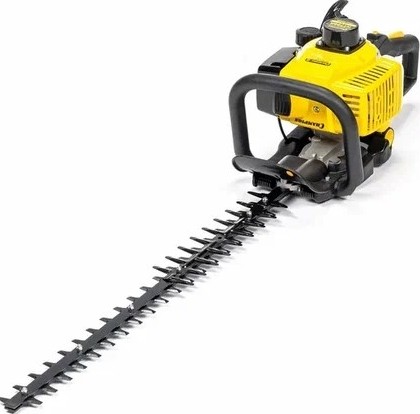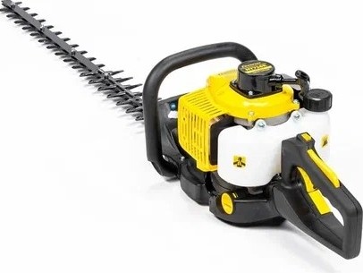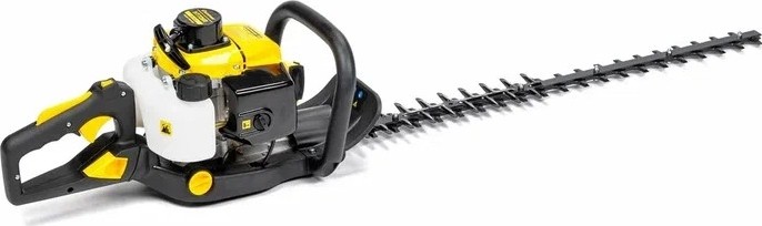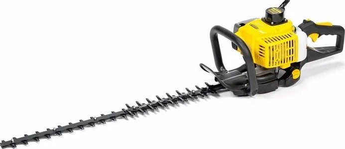 Инструмент очень удобен тем, что он не нуждается в электроэнергии. Он готов работать в любую погоду, а также независимо от перебоев тока, а его эксплуатации хватит на продолжительный период времени, благодаря объемному топливному баку. Устройство оборудовано двухтактным мотором с воздушным охлаждением, который выдает мощность одну лошадиную силу. Цилиндр имеет хромированное покрытие, что способствует увеличению ресурса двигателя. Длина ножа составляет 72 сантиметра, за счет чего большая и широкая живая изгородь будет обрабатываться более эффективно и быстро.