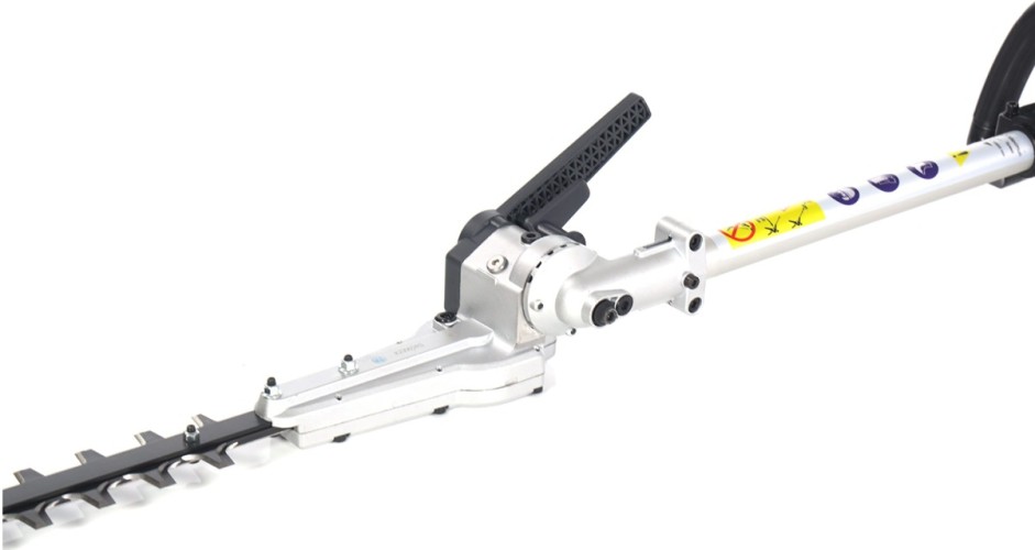 Профессиональные штанговые бензоножницы ZimAni 525HF Pro c бензиновым двигателем Zenoah Engine G26, оснащенным надежным японским карбюратором Walbro позволяют осуществлять стандартное и фигурное обрезание низких, объемных и высоких живых изгородей и кустарников. Оснащены двухсторонними ножами длиной 75 см с возможностью поворота. Специальная конструкция фиксирующего механизма обеспечивает настройку оптимального угла резки без отрыва руки от эргономичной D-образной передней ручки. Увеличенная скорость работы износостойких стальных ножей способствует обработке веток толщиной до 20 мм. В целях упрощения повторного пуска подпружиненная кнопка зажигания оснащена функцией автовозврата в активное положение после отключения. Наличие системы облегченного запуска и ручного топливного насоса гарантирует быстрый старт ДВС даже в холодное время года.