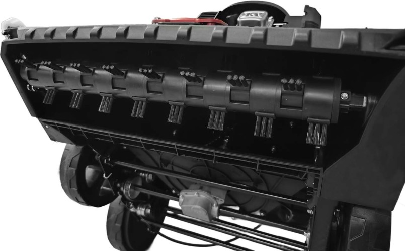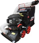 Пылесос садовый, бензиновый, с приводом, оснащенный современным, 4-тактным, двигателем (166см3, 2,9кВт, 9.5Н.м), предназначен для ухода за парковыми территориями, в том числе и при коммерческом использовании, как в режиме сбора скошенной травы и листвы с измельчением и сбором биологического мусора в травосборник 150л, так и в режиме расчистки участка потоком воздуха, направляемого оператором через шланг. Модель предназначена для расчистки ровных участков, как газона, так и дорожек в парковой зоне, покрытых асфальтом и тротуарной плиткой, с предварительно убранными фрагментами строительного мусора (битый кирпич, бетон, арматура и т.п.). Привод позволяет оператору маневрировать при движении машины с минимальными усилиями. Ширина обработки 58см. Приёмная дека имеет 5 положений в диапазоне 15 - 60 мм и центральную регулировку. Выносной шланг с рукояткой расширяет рабочую зону машины, позволяя убирать мусор в труднодоступных местах, например под кустами, не съезжая с дорожки, либо сформировать потоком воздуха из опавших листьев кучу для дальнейшей утилизации. Входящий в комплект вал с щётками, имеет привод, включаемый рычагом на рукоятках. Такая конструкция позволяет приподнимать, например, мокрую листву с дорожек, что обеспечивает более высокое качество очистки территории.