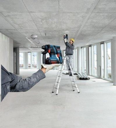 Перфоратор аккумуляторный BOSCH GBH 36 V-EC Compact бесщеточный — компактный инструмент с ударной силой 1,8 Дж для работы с плиткой, бетоном и другими прочными материалами. Бесщеточный двигатель с защитой от перегрузок и заклинивания выделяется повышенной производительностью и длительным ресурсом. Технология Heavy Duty поддерживает стабильные обороты даже под максимальными нагрузками. Кроме того, это гарантирует длительный срок службы и большой ресурс. Основная рукоять Bosch GBH 36 V-EC Compact улучшена прорезиненными вставками, которые уменьшают вибрации, передающиеся на руку во время использования устройства.