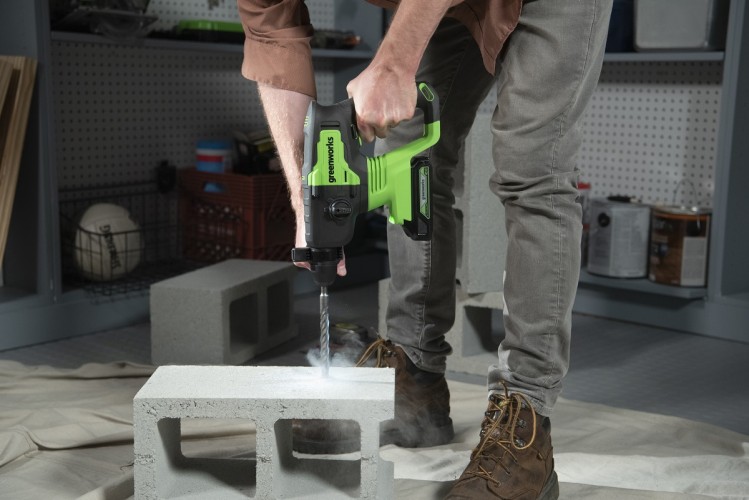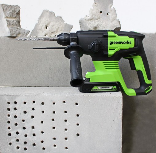 Аккумуляторный перфоратор Greenworks 24V - прекрасный инструмент для проведения строительных и ремонтных работ для дома и дачи . Незаменим в местах , где отсутствует источник питания ( розетка) или доступ к ней затруднен.
