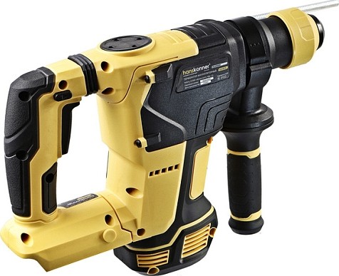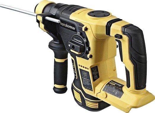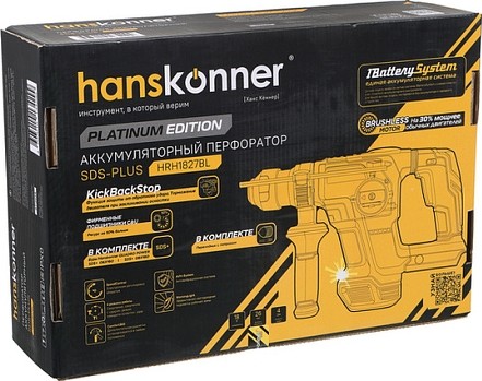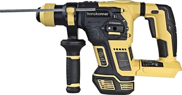 HRH1827BL Hanskonner серии PLATINUM – 18 В аккумуляторный перфоратор с патроном под оснастку SDS+ часть системы 1BatterySystem и совместим со всей линейкой инструмента данной системы. Подходит для сверления отверстий в бетоне, дереве и стали. Имеет 3 режима: сверление, сверление с ударом, долбление + режим предустановки долота.