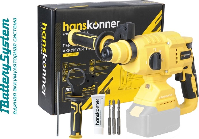 Аккумуляторный перфоратор HANSKONNER HRH2022BL предназначен для безударного и ударного сверления отверстий в различных материалах (при использовании соответствующих сверл и буров), а также для работы в режиме долота (при установке соответствующего инструмента).