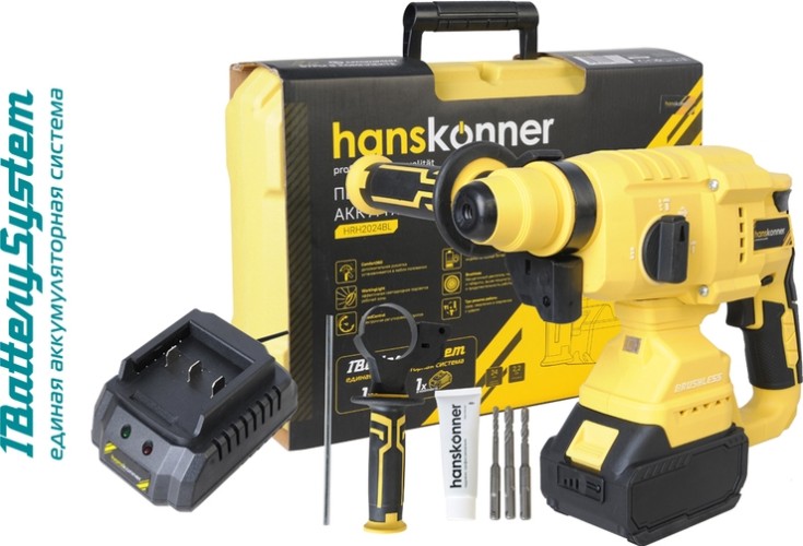 Аккумуляторный перфоратор HANSKONNER HRH2024BL предназначен для безударного и ударного сверления отверстий в различных материалах (при использовании соответствующих сверл и буров), а также для работы в режиме долота (при установке соответствующего инструмента).