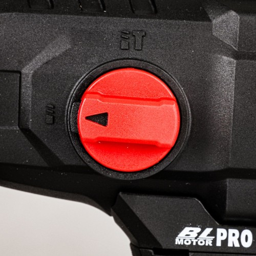 Двухрежимный аккумуляторный бесщёточный перфоратор SDS-Plus с горизонтальным расположением двигателя.