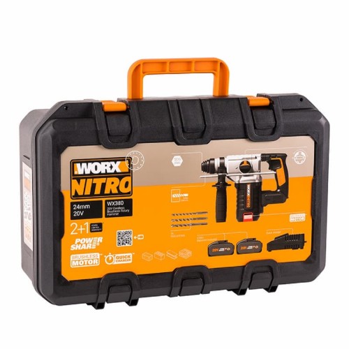 Аккумуляторный перфоратор WORX WX380 обладает высокой мощностью, позволяя легко сверлить бетон, металл или кирпичную кладку. Перфоратор работает от универсального аккумулятора WORX Powerhare, обеспечивая свободу перемещения и независимость от электросети.