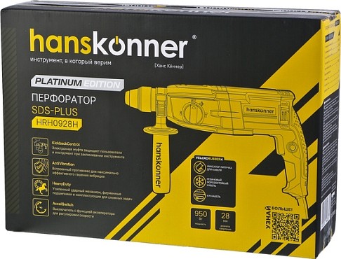 Перфоратор Hanskonner HRH0928Н — компактный, маневренный электроинструмент для сверления отверстий в таких материалах как: дерево, сталь, кирпич, бетон или снятия старой керамики, штукатурки. В целях выполнения конкретной задачи следует выбрать один из трех режимов: «сверление», «сверление с ударом», «удар». Данная модель отлична усиленным ударным механизмом, фирменными подшипниками и встроенным противовесом для эффективного гашения вибраций, что в суме позволяет с комфортом выполнять сложные работы.