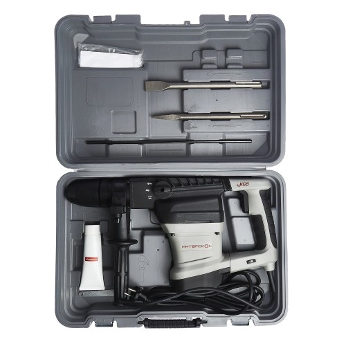 Двухрежимный сетевой перфоратор класса SDS max вертикальной компоновки с виброзащитой основной рукоятки. Рекомендуется для бурения полнотелыми бурами, коронками и долотами для проделывания отверстий и полномасштабных отбойных работ для профессионального использования. Оснащается дополнительной рукояткой с ограничителем глубины бурения.