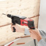 SKIL RH1109 — это надёжный и мощный сетевой перфоратор с пневматическим механизмом и двигателем 850 Вт, предназначенный для эффективного бурения бетона, а также выполнения работ по кирпичу, дереву и металлу. Инструмент поддерживает 4 рабочих режима, включая долбление с фиксацией и без, сверление с ударом и без.