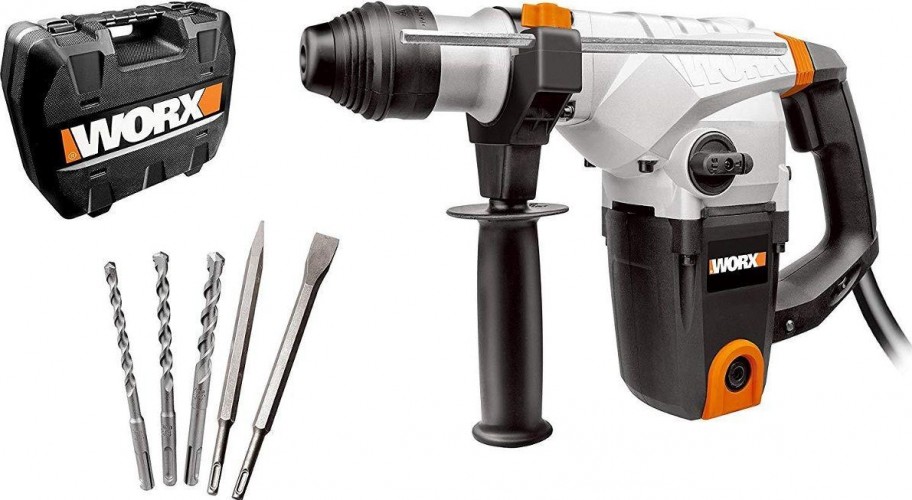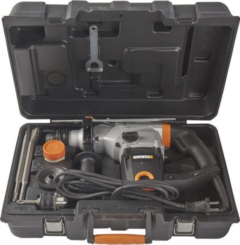WORX WX333 – это мощный и безотказный электрический перфоратор, работающий от сети 220В. Универсальный перфоратор позволяет с легкостью выполнять отверстия в дереве, металле, бетоне или кирпичной кладке. Магнезиевый корпус электродвигателя гарантирует устойчивость к высоким нагрузкам и длительный срок службы инструмента! В комплект поставки уже включены: антивибрационная рукоять, 3 SDS-сверла, 2 зубила, металлический ограничитель глубины сверления, чехол от пыли и кейс для хранения.