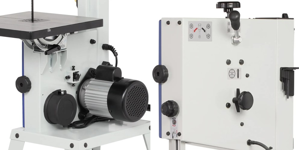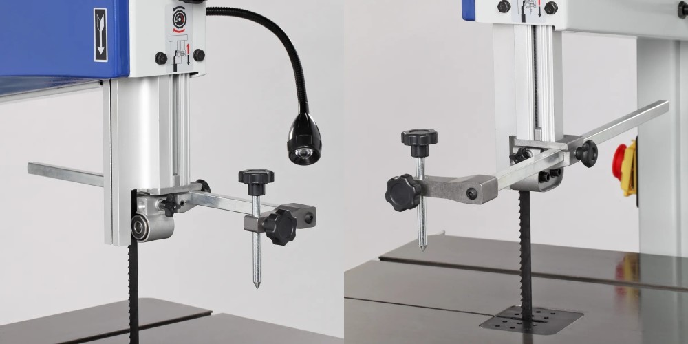 На станок подходят пильные полотна длиной 2560 мм и шириной от 3 до 25 мм. Подобрать полотно. Скоростей полотна две: 370 и 800 м/мин. Натяжение полотна производится ручкой плавной регулировки: поворот по часовой стрелке увеличивает натяжение, против часовой стрелки уменьшает.