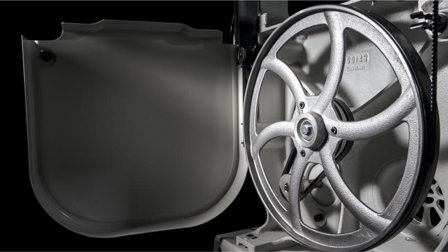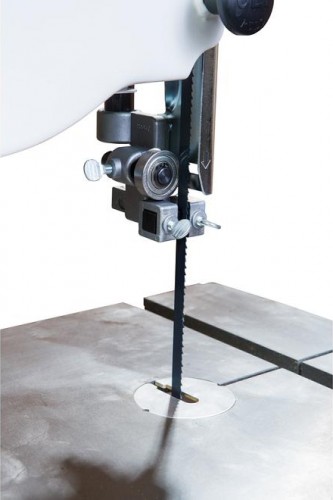 Особенность станка заключается в том, что его ключевые параметры можно варьировать, «подгоняя» под конкретные задачи, решаемые в мастерской. Во-первых, предусмотрено увеличение высоты пропила. Для этого предназначен комплект деталей со 150-миллиметровой вставкой в раму, после её монтажа доступна распиловка заготовок высотой до 305 мм (естественно, требуются более длинные, чем изначально, полотна). Во-вторых, доступны разные варианты трёхточечных направляющих полотна. Штатный — регулируемые скользящие со сменными пластиковыми вставками-слайдерами — оптимален для точных резов с небольшой нагрузкой. Дополнительный — трёхроликовые с шарикоподшипниками — максимально универсален и обеспечивает наименьший износ полотна при тяжёлых работах.