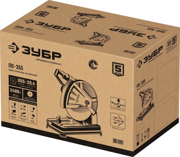 Пила отрезная ЗУБР Профессионал ПО-355 применяется для прямой и косой отрезки металлических заготовок абразивным отрезным кругом.