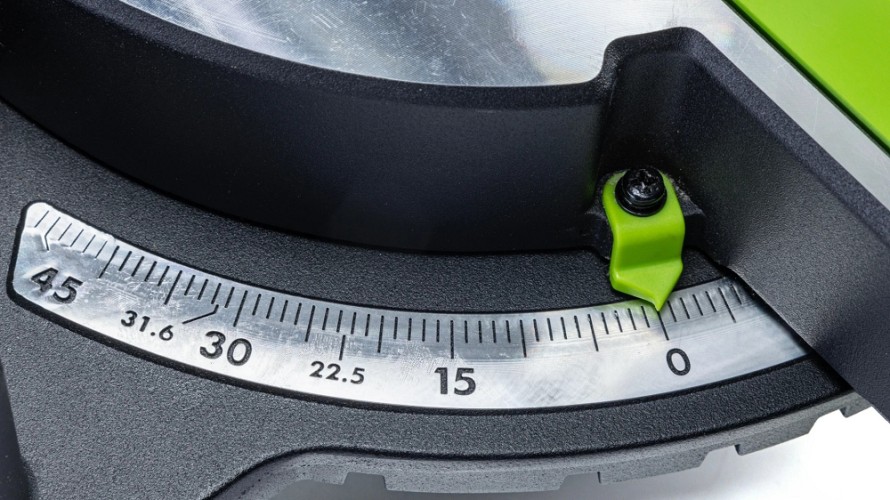 Удобная регулировка пильной части влево в диапазоне 0-47° с быстрой настройкой часто используемых углов.