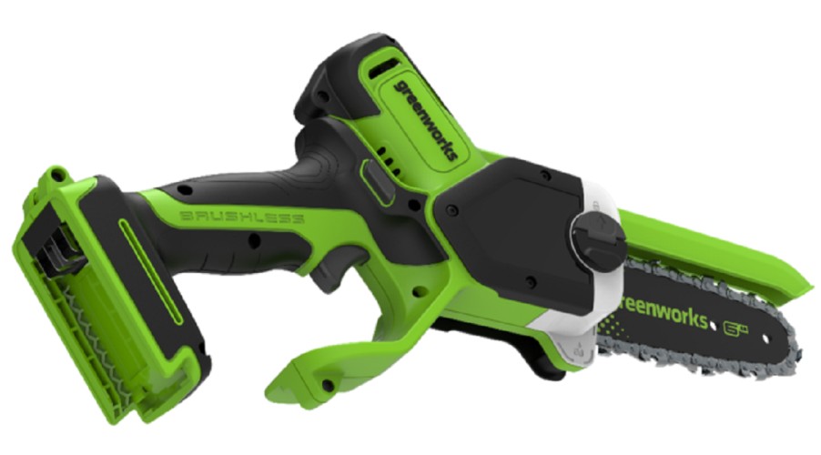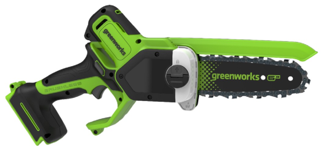 Пила цепная аккумуляторная GREENWORKS GD24CS15 24V, без АКБ и ЗУ построена на основе производительного и надёжного бесщёточного двигателя DigiPro™, который эффективно использует энергию аккумулятора и не теряет мощность под нагрузкой. Компактная бесщёточная цепная пила с шиной 15 см, которая отлично справится с заготовкой дров в походе, а также поможет с обрезкой веток и сучьев на даче или с распилом досок на стройплощадке. Работой инструмента управляет Greenworks Intelligent Power – инновационная система контроля и управления батареей, инструментом и зарядным устройством обеспечивающая максимальную производительность и долгий срок службы. Пильная шина из кованной стали и пильная цепь с высокой режущей способностью обеспечивают непревзойдённую производительность - до 137 резов хвойного бруса 50х50 мм от заряда акб 2 Ач и до 324 резов хвойного бруса 50х50 мм от заряда акб 4 Ач.