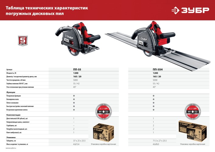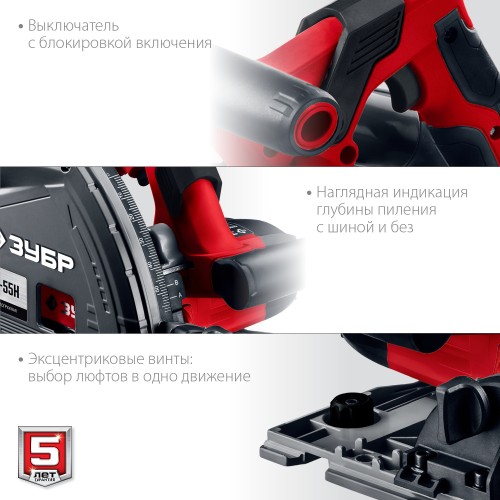 Пила циркулярная сетевая ЗУБР ПП-55Н + направляющая предназначена для работ, требующих повышенной точности распила. Имеет все востребованные функции и регулировки. Основание позволяет использовать комплектную направляющую шину, что делает качественное пиление простым.