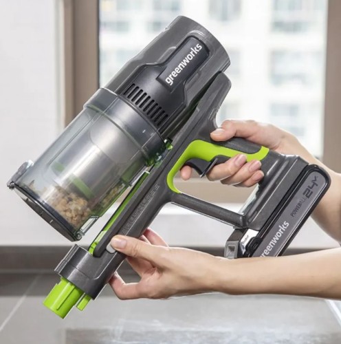 Мощные беспроводные вертикальные пылесосы премиум класса Greenworks. Идеальное дополнение линейки Greenworks как в загородном доме, так и в городской квартире. Высокая производительность: мощность 500 Вт и мощность всасывания 170 Вт – все для отличной уборки. Длительность беспрерывной работы до 45 минут, причем с использованием электрощетки. Все это дает возможность убрать квартиру на одном заряде. Индикация режима, оставшегося времени, подскажет вам когда необходимо будет поставить пылесос на зарядку. Быстрый заряд всего за 30 минут, практически вне конкуренции. Пылесос готов к работе после непродолжительного перерыва и что самое главное, вашего отдыха. Зарядка 3 устройств от зарядной базы (модель 4700607UB). Аккумулятор и в тоже время Power Bank, который имеет два USB-C порта, для зарядки ваших устройств. Быстрая зарядка 65 Вт! Фильтр HEPA13 способен задерживать не только мельчайшие частицы пыли но и аллергены, бактерии и даже некоторые вирусы. HEPA13 задерживает 99,97% частиц до 0,3 мкм. И конечно, фильтр можно промывать.