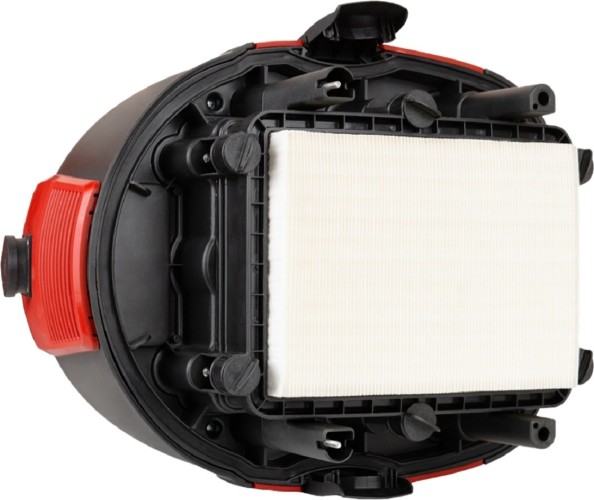 Пылесос снабжён плоским HEPA фильтром, в отличие от круглой конструкции, позволяет максимально использовать объем бака, тем самым увеличивая продолжительность работы с максимальным всасыванием. Пылесос можно использовать как без мешков для сбора пыли, так и с одноразовыми бумажными мешками, и с многоразовыми мешками.