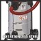 Пылесос строительный Einhell TE-VC 2340 SACL имеет инновационную систему очистки фильтра от пыли, которая эффективного удаляет, как и крупные частицы, так и микрочастицы грязи и пыли. Объем бака из нержавеющей стали составляет 40 литров. Также у пылесоса имеется функция выдувания для быстрой очистки всасывающего шланга или удаления мусора из труднодоступных мест. Для удобной работы предусмотрены два больших и два роликовых колеса, а также ручка для перемещения и держатель кабеля на корпусе. Для слива жидкости в баке предусмотрен дренажный клапан. На ручке установлен регулятор воздушного потока. Пылесос укомплектован телескопической трубкой из нержавеющей стали, сверхпрочным пластиковым всасывающим шлангом длиной 3 м, комбинированной насадкой, щелевой насадкой, пылесборником, гофрированным HEPA-фильтром и поролоновым фильтром. В корпус встроена розетка для инструмента с синхронным стартом.