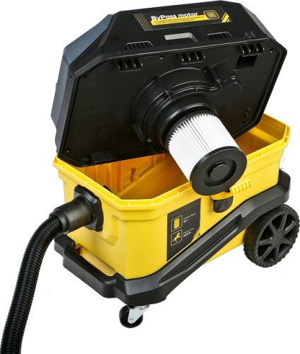 Помимо традиционного режима всасывания, конструкцией предусмотрен режим выдува воздуха – он идеально подходит для экспресс-очистки рабочих столов и верстаков, а также очистки штроб и т д. Также, пылесос может применяться и для сбора негорючих жидкостей. Благодаря мощной системе фильтрации, с применением высокоэффективного HEPA фильтра, предотвращается попадание пыли и абразивных частиц в двигатель.