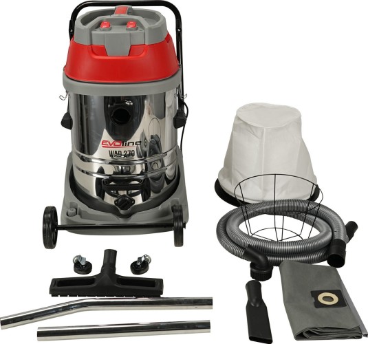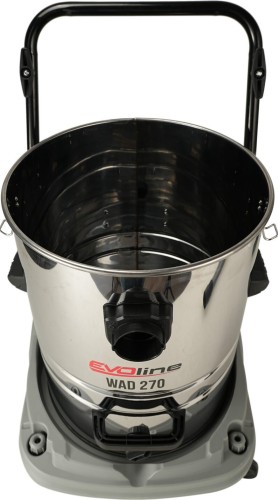 Электрический пылеводосос EVOline WAD 270 оборудован двумя мощными турбинами для быстрого сбора больших объемов мусора. Модель предназначен для коммерческого и промышленного использования. Отлично подходит для сухой и влажной уборки. Бак из нержавеющей стали объемом 70 литров позволяет сократить количество технологических перерывов для его опорожнения. Для облегчения очистки бак опрокидывается вместе с ручкой. При необходимости есть возможность снять бак с тележки и установить стационарно в удобном месте. В нижней части бака смонтирована сливная пробка. Турбины могут включаться по отдельности или вместе. К тележке пылесоса может быть смонтирована балка для уборки больших площадей.