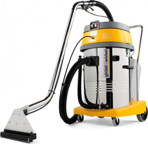 Аппарат для чистки ковровых покрытий с двумя всасывающими турбинами. Бак из нержавеющей стали. Версия CEME имеет помпу мощностью 60 Вт, производительностью 4,25 л/мин и давлением 6 бар. Версия ULKA имеет помпу мощностью 28 Вт, производительностью 0,95 л/мин и давлением 4 бар. Предохранительный термостат и независимое управление помпой. Шланг для слива жидкости из бака. Аппарат может использоваться в качестве пылесоса для влажной и сухой уборки с помощью соответствующих принадлежностей (опция). Версия AUTO оснащена только ручной насадкой и всасывающим шлангом длиной 6 м Ø 40.