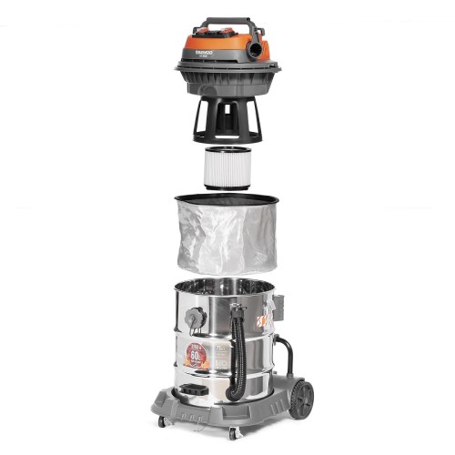 Особенностью этой модели является универсальность способов применения: от уборки строительных отходов до сбора жидкостей. Пылесос может подключаться к стандартной сети 220В и оснащен 5-метровым кабелем питания для мобильности. В комплекте идут как ручные насадки для точечной уборки, так и профессиональные аксессуары для комплексной очистки помещений. Прочная конструкция с 60-литровым баком и металлической телескопической трубой делает этот пылесос надежным помощником в самых сложных условиях. Система креплений и фильтров продумана для быстрого обслуживания и длительной работы без потери мощности всасывания.