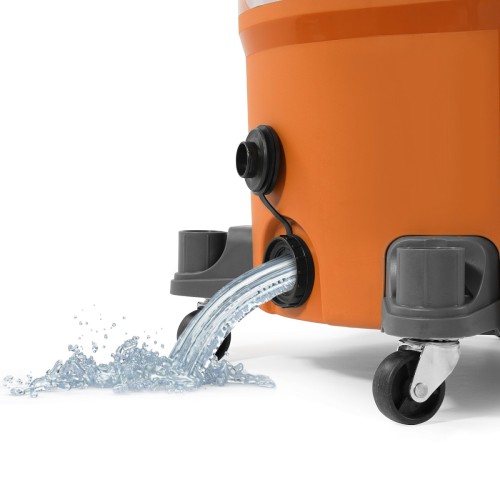 В комплект входят аксессуары и специальные насадки, включая уникальную насадку для прочистки засоров, которая поможет быстро устранить засоры в сливах раковин, ванн и душевых кабин. Наличие сливного отверстия упрощает удаление жидкости без необходимости переворачивать корпус, что особенно удобно при уборке больших объемов.