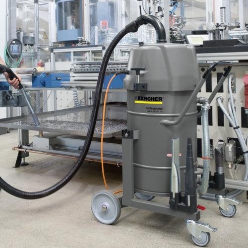 Промышленный пылесос IVR-L 65/12-1 Tc предназначен для сбора охлаждающих жидкостей, смазочных эмульсий, воды или масел, смешанных с твердыми веществами (например, металлической стружкой), и их разделения. Стружка может собираться в специальной корзине, а жидкость – отводиться через сливной шланг для ее повторного применения. Благодаря откидному шасси опорожнение мусоросборника может производиться и путем его опрокидывания. Сливной шланг обеспечивает постоянный контроль уровня собираемой жидкости. Патрубок для присоединения всасывающего шланга, закрепленный на турбинной голове пылесоса с возможностью поворота на 360°, позволяет удобно производить уборку вокруг аппарата, не опасаясь скручивания шланга. Встроенное механическое устройство контроля уровня своевременно отключает аппарат при заполнении мусоросборника. Аппарат IVR-L 65/12-1 Tc, оснащенный двигателем мощностью 1,2 кВт, является моделью начального уровня в классе пылесосов для сбора жидкостей и стружки.