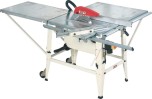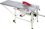 Jet JTS-315SP – строительная пила, сочетающая в себе простоту конструкции, очень широкую функциональность, мобильность, надежность, высокую мощность (особенно в 3-фазном исполнении) и большую (до 90 мм) глубину распиловки. Рабочий стол из оцинкованного листа имеет большую поверхность, в случае необходимости его удлиняют (дополнительная секция входит в штатную комплектацию).Параллельный упор перемещается вдоль направляющего профиля и имеет эксцентриковый зажим, обеспечивающий быструю и надежную фиксацию. Есть у JTS-315SP и подвижный стол, перемещающийся на роликах-подшипниках вдоль основного. Поверхность каретки невелика, но это отчасти компенсируется длинным упором заготовки, позволяющим добиться точности. Упор можно поворачивать, ориентируясь по транспортирной шкале; если нужна серия коротких изделий, настраивают концевой упор – он «ходит» вдоль основного. В отличие от большинства специализированных строительных пил JTS-315SP имеет регулировку наклона и глубины реза.Для облегчения транспортировки опорные ноги складываются примерно на половине высоты, благодаря чему станок легко помещается в багажник легкового автомобиля. Перемещать инструмент по площадке легко в одиночку: колеса, откидные рукоятки и небольшой вес это позволяют.
