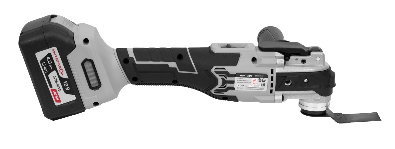 ИНТЕРСКОЛ МФА-18ВМ - это бесщеточный аккумуляторный реноватор, который способен аккуратно и точно решать разнообразные задачи, связанные с пилением, резкой, шлифовкой, очисткой, подгонкой деталей по месту. В том числе это деликатная резка различных пластиковых, деревянных, комбинированных материалов - различного погонажа - плинтусов и обналички, пластиковых панелей и вагонки, кабель-каналов, пластиковых труб, проделывание глухих отверстий сложной формы, выборка пазов и прочее. Работы выполняются с помощью различных насадок, количество которых насчитывает более тысячи разновидностей. В основе работы реноватора лежит использование осциллирующего привода.