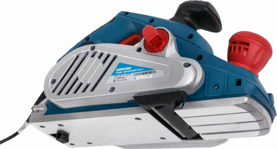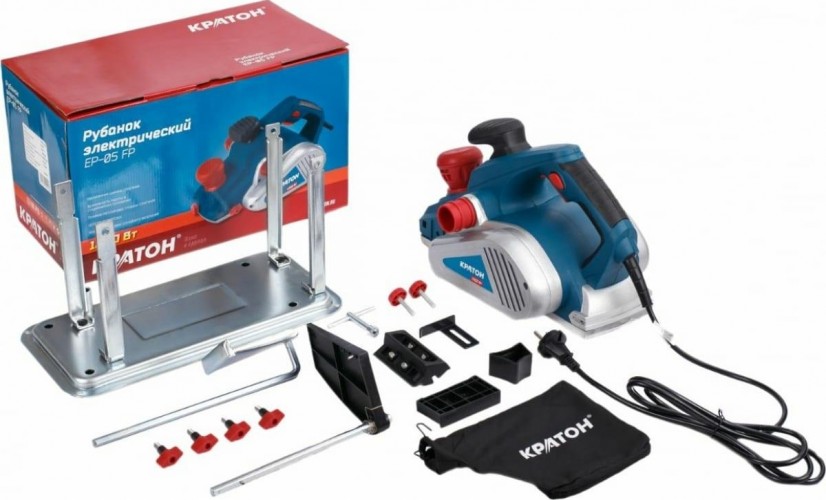Электрический рубанок Кратон EP-05 FP, 1300 Вт используется для обработки дерева любых пород, для работы с кромками, выборки фальц-выемки. Инструмент оснащен плавной установкой глубины строгания - до 4 мм, регулировка осуществляется с помощью передней поворотной ручки. Наличие патрубка для пылеотвода позволяет подключить пылесос. Предусмотрена кнопка блокировки случайного включения. Мягкая накладка на рукоятке обеспечивает надежный захват во время работы. Предусмотрена возможность работы устройства в стационарном положении.