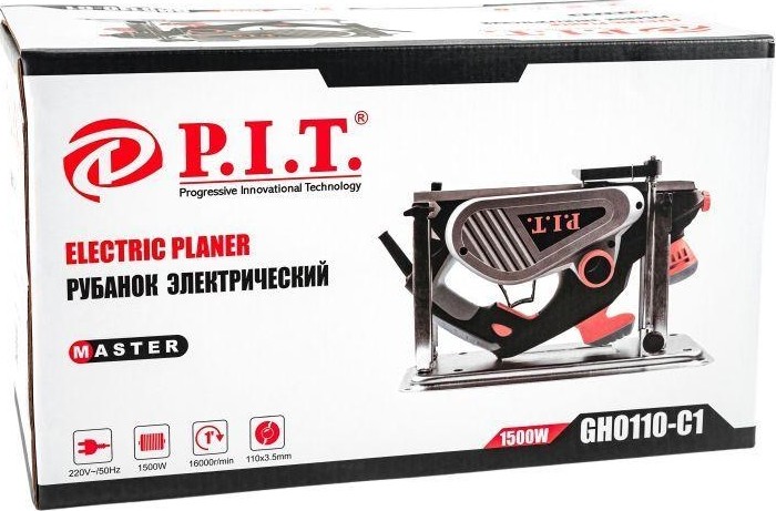 Один из самых мощных рубанков PIT - отличный помощник для вашей мастерской. Качественный, мощный и надежный инструмент для работы с древесиной любой твердости. Подходит для строгания шириной 110мм. Благодаря высокой мощности снимает до 3,5 мм древесины за один проход. Производительность работы обеспечивает внушительная мощность (1500 Вт) и большое количество оборотов (16000 об/мин). При этом инструмент легок и удобен в работе. Используйте рубанок P.I.T. GHO110-C1, чтобы обтесывать, строгать и подгонять необработанную древесину. Рубанок идет в комплекте со станиной, с помощью которой можно использовать инструмент в качестве рейсмуса. Также рубанок подойдет для выбора четверти, снятия фасок. Мощный и производительный инструмент для дома, хобби или работы.