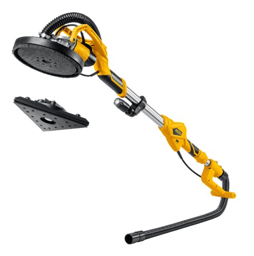 Машина шлифовальная для стен (жираф) - незаменимый инструмент для обработки как горизонтальных, так и вертикальных поверхностей. Благодаря сменному типу насадки (круг или треугольник) можно работать как по площади, так и в углах. Раздвижная рукоятка позволяет отрегулировать инструмент под свой рост и дотянуться во все точки без лестницы. Минимальное количество пыли при работе за счет возможности подключения пылесоса.