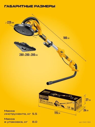 Шлифмашина STEHER DWC-800 для стен (жираф) d225 мм