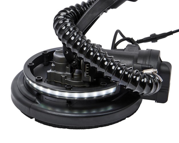 Шлифовальная машина мощностью 750 Вт с подошвой для установки шлифовальных кругов диаметром 225 мм и телескопической штангой предназначена для шлифовки стен и потолков, выполненных из гипсокартона или гипсовой штукатурки. Машина оснащена светодиодной лентой подсветки рабочей зоны, а также мешком для пыли и встроенным пылесосом, при возможности подключить к шлангу внешний пылесос для минимального образования пыли и достижения наилучших результатов шлифования.