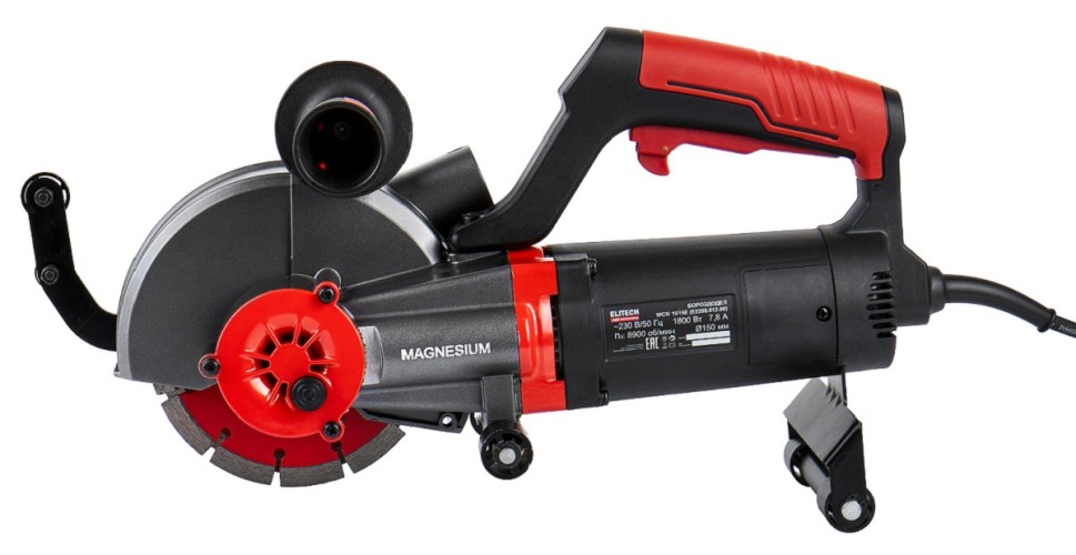 Бороздодел с электродвигателем мощностью 1800 Вт, с плавным пуском и диском диаметром 150 мм, предназначен для прорезания технологических борозд и штробления в бетоне под укладку различных коммуникаций - кабелей, проводов, труб и т.п.