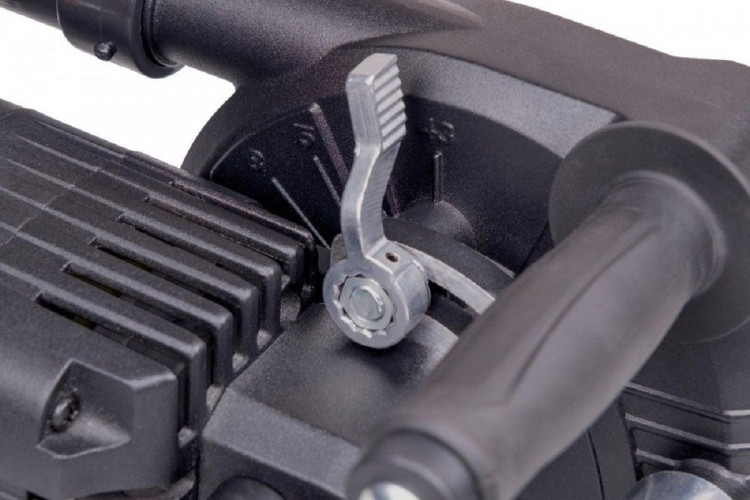 Штроборез имеет 3 параллельно установленных рабочих диска размером 150 мм. Максимальная глубина реза штробы 43 мм, ширина реза 30 мм.