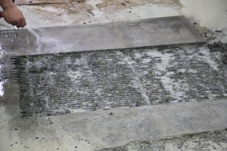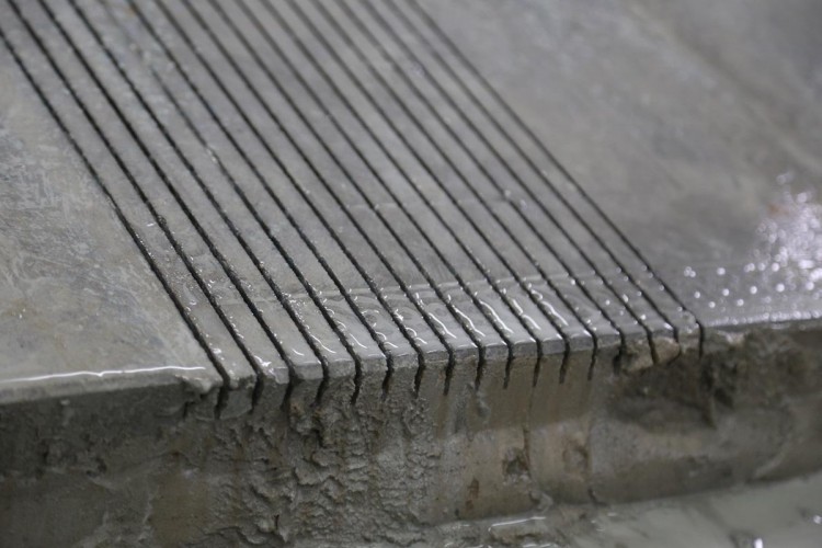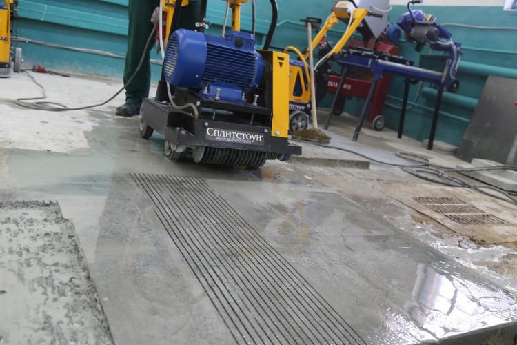 Операция по фрезеровке выполняется отрезными алмазными дисками диаметром 150 мм. На машине предусмотрена установка до 17 таких дисков, что обеспечивает ширину обработки до 290 мм за один проход.
