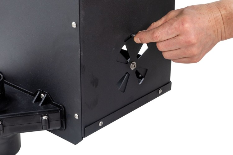 Конструкция – стальной сборный короб. Отверстия для крепления к чугунному фрезерному столу JRT-1C. В нижней части есть порт для подключения системы пылеудаления шлангом 63,5мм на входящий шланг от фрезерного упора и 100мм на общее отведение в систему стружкоудаления. С противоположной стороны устроена дверка для доступа к фрезерному двигателю. С обеих сторон находятся встроенный порт подачи внешнего воздуха и регулируемая шторка вентиляции. Они необходимы для вентиляции двигателя и внутреннего пространства короба. Количество воздуха можно регулировать при помощи шторки, открывая или закрывая ее.