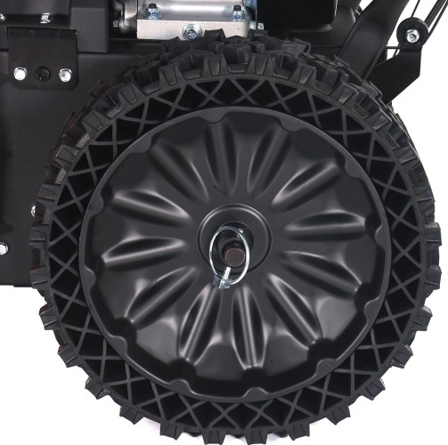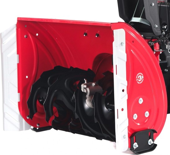 Двухступенчатая система выброса со стальным шнеком позволит справиться даже с уборкой плотного слежавшегося снега и измельчением ледяного наста. Двигатель высокой мощности и колесный привод (самоходная конструкция) обеспечивают максимальное удобство использования агрегата и высокую производительность.