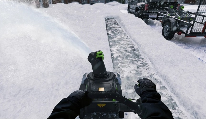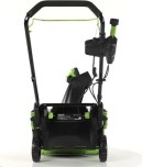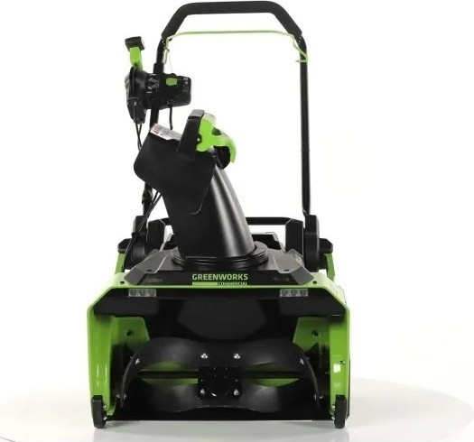 Для безопасного включения предусмотрена кнопка-предохранитель. Ручка имеет складную конструкцию. Снегоуборщик работает от аккумуляторной батареи 82V, которую можно использовать с другими с устройствами Greenworks из линейки 82V.