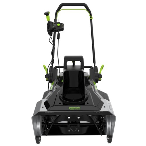 Снегоуборщик аккумуляторный GREENWORKS 82SN22 82V — снегоуборщик из серии 82V для очистки средних и больших участков. Имеет ширину шнека 56 см, дальность выброса до 9 м. Оснащен 2 слотами для батарей, бесщеточным двигателем. Снегоуборщик аккумуляторный – предназначен для уборки снега перед домом, гаражом, коммерческими объектами, а также очистки веранд, дорожек. Большая мощность (2,9 кВт / 3,9 л.с.) и обороты шнека до 2400 об/мин позволяют работать быстрее и увеличить максимальную дальность выброса снега до 12 м. Инновационный бесщеточный двигатель DigiPro™ с внешним ротором и электронным управлением обеспечивает большой крутящий момент, более эффективный расход электроэнергии, долгий срок службы, не требует обслуживания. Для оптимальной производительности рекомендуется использовать с аккумуляторными батареями емкость 8 Ач или 5 Ач. Время работы снегоуборщика сильно зависит от высоты снежного покрова, его плотности, температуры на улице. С двумя аккумуляторными батареями по 5 Ач ориентировочное время работы составляет от 19 до 37 мин. С двумя аккумуляторными батареями по 8Ач ориентировочное время работы составляет от 30 до 60 мин. Время работы в режиме холостого хода около 128 мин.