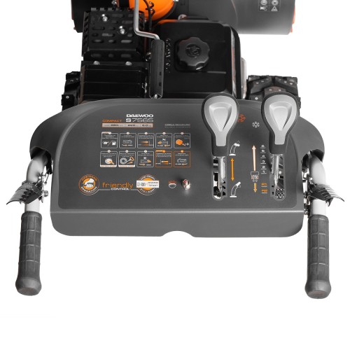 Бензиновый снегоуборщик DAEWOO DAST7565 с зимним двигателем DAEWOO 220 snow мощностью 8 л.с. и электростартером. Техника легко заводится даже в морозы. Машина имеет 6-ступенчатую коробку передач, регулировки высоты и направления выброса снега. Расширители ковша увеличивают ширину обработки до 65 см. Управление снегоуборщиком производится с панели оператора. Колеса EX‑ICE WHEELS обеспечивают хорошую маневренность и проходимость.