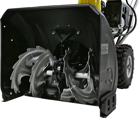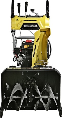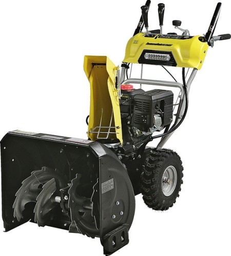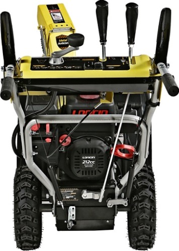 Модель оснащена надежным четырехтактным двигателем рабочим объемом 212 см3, мощностью 7л.с., предназначенным для интенсивной зимней эксплуатации, а также многоступенчатой трансмиссией, с шестью скоростями движения вперед и двумя назад. Низшие передачи применяются при уборке плотно слежавшегося и мокрого снега, средние передачи - для работы со свежевыпавшим снегом, высшая передача - транспортный режим, предназначенный преимущественно для перемещения снегоуборщика.