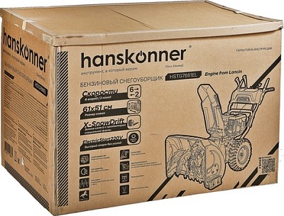 Снегоуборщик бензиновый HANSKONNER HSTG7661EL - мощный и производительный самоходный бензиновый снегоуборщик с максимальным уровнем оснащения. Предназначен для расчистки территорий средней и большой площади от снега различной плотности, как свежевыпавшего, так и слежавшегося.