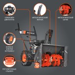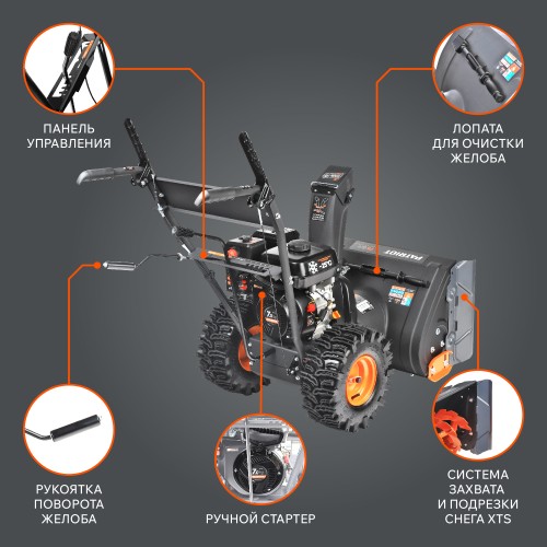 Модель оснащена бензиновым двигателем объемом 212 куб. см, обеспечивающим мощный и стабильный запуск даже при низких температурах. Система воздушного охлаждения способствует продолжительной и безопасной работе, а встроенная система защиты предохраняет узлы от перегрузок при столкновении с плотным льдом или препятствиями.