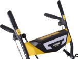 Шнек металлический, он легко справляется с уборкой даже сильно слежавшегося, подтаявшего или заледенелого снега. Можно отрегулировать направление выброса, для этого есть специальный рычаг. За один проход снегоуборочной машины SGC 4100 от снега очищается полоса шириной 56 см с высотой забора — 54 см.